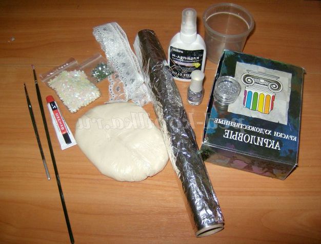Рецепт тіста:борошно - 200 гр, сіль - 200 г, вода - 125 гр , трохи клей ПВА (приблизно половину чайної ложки). Замішуємо круте тісто, щоб не липло до рук, було еластичне. Щоб не висохло, готове тісто потрібно зберігати в поліетиленовому пакеті.