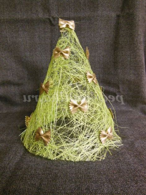 Об'ємна ялинка з сизалю, прикрашена макаронними виробами