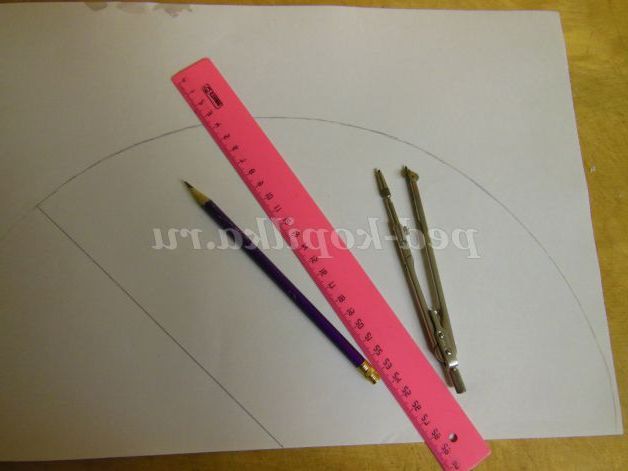 2. Креслимо шаблон ялинки: беремо аркуш паперу формату А3, циркулем проводимо дугу радіусом 23 - 25 див По лінійці отчерчиваем частину півкола. Нам знадобиться сектор приблизно 120 - 140 градусів.