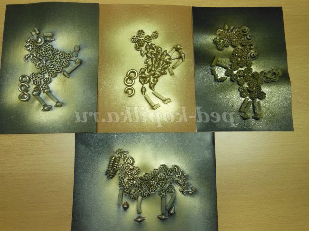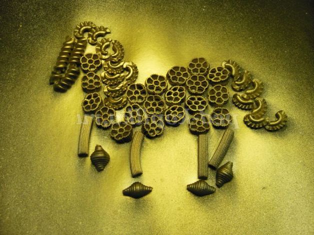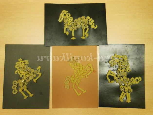 Конячка - символ року в техніці "аплікація з макаронних виробів"