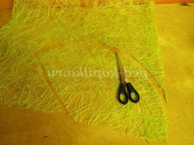 5. Притримуючи шаблон, вирізаємо заготовку ялинки з сизалю.