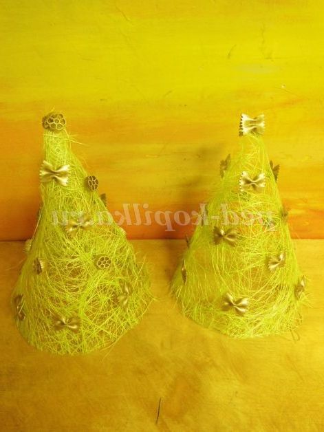 1. об'ємна ялинка з сизалю, прикрашена макаронними виробами;