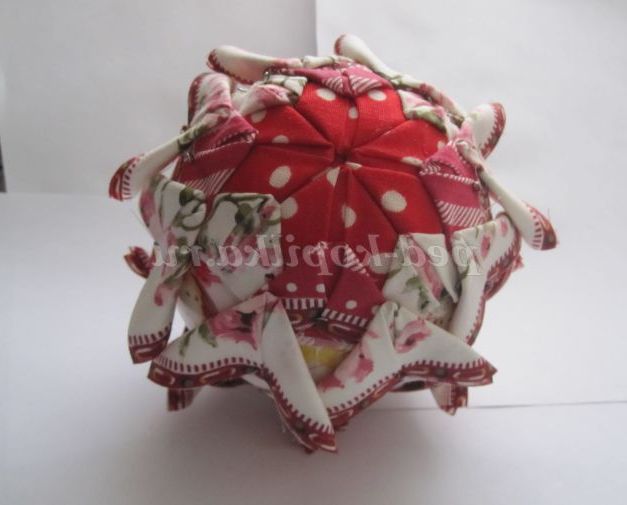 ІІІ етап. Далі приколюємо наш прямоугольничек з голкою в середину, того квадратика який ми прикололи на м'ячик , а верхні куточки прямоугольничка загинаємо один і одному і складаємо їх голочкою. (повинен вийде трикутничок)