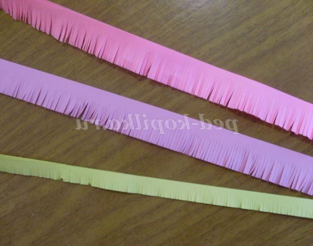 3.Бумажные смужки нарізаємо дрібно впоперек, не доходячи ножицями до краю 2-3 мм.