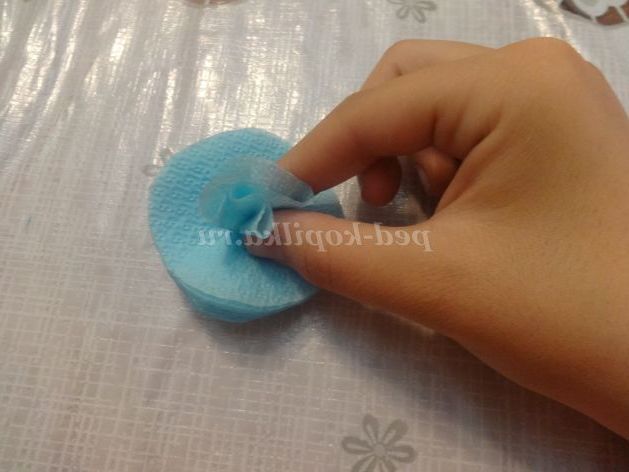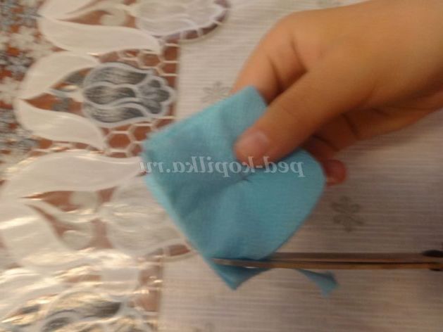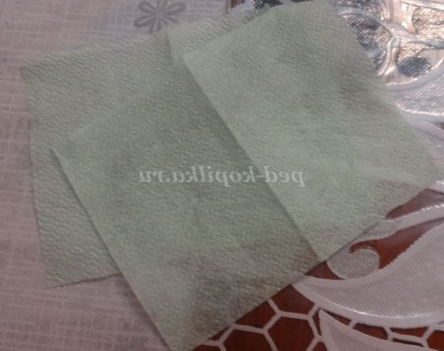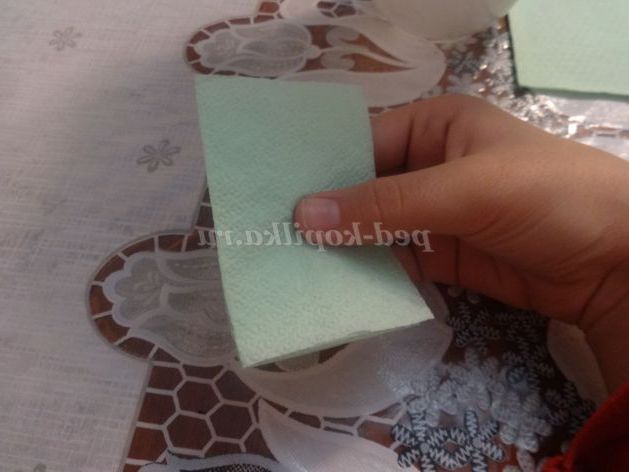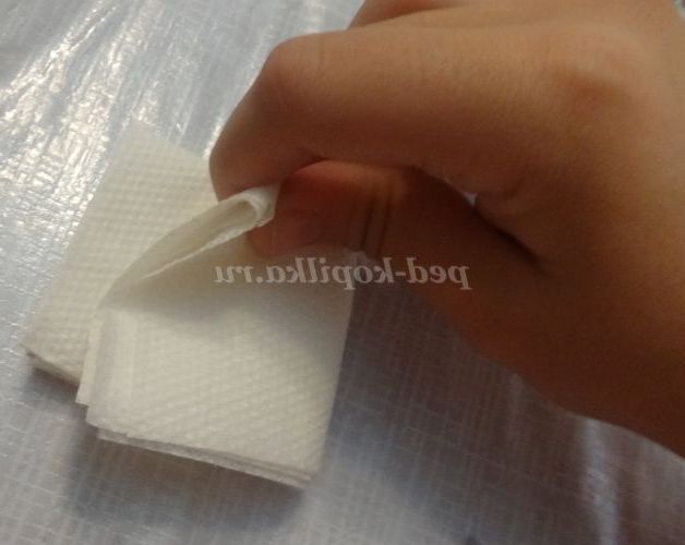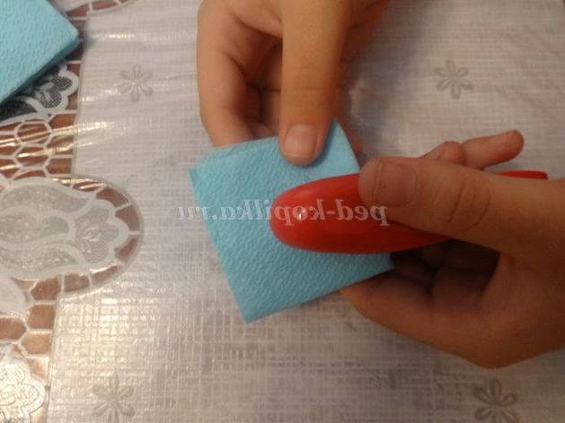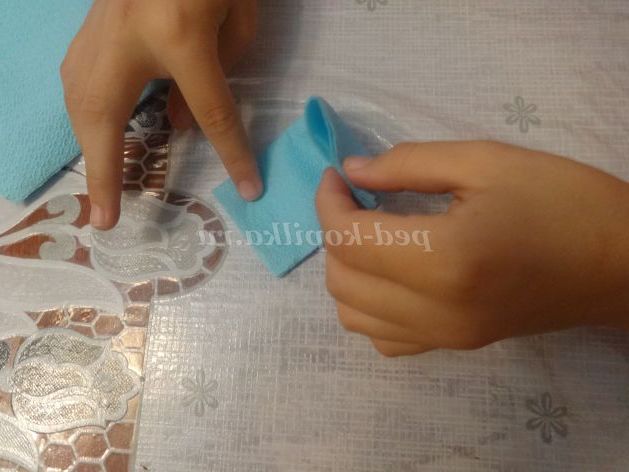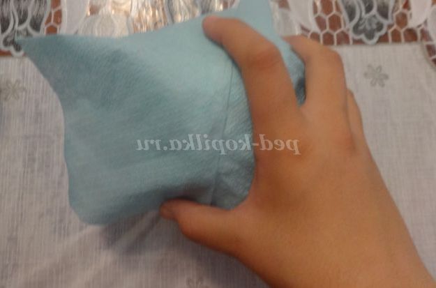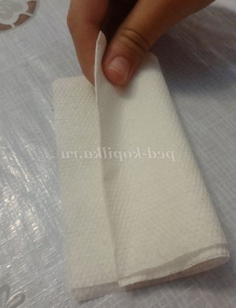 Потрібно взяти блакитну серветку і зігнути її вдвічі.
