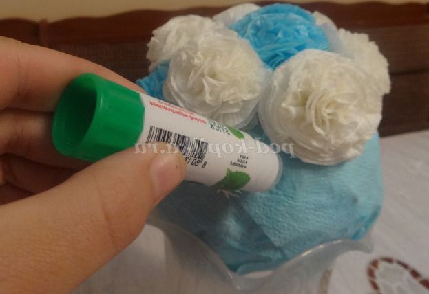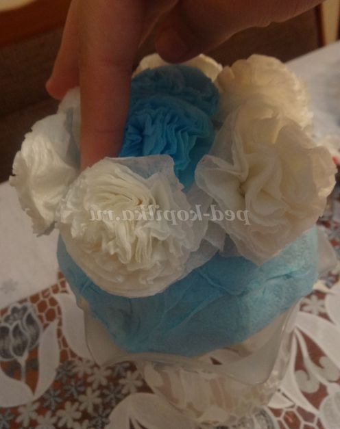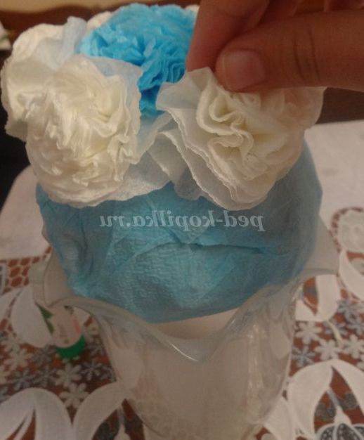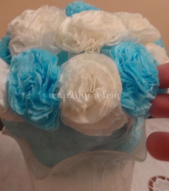 За тією ж схемою виготовляємо квіти з білих серветок.