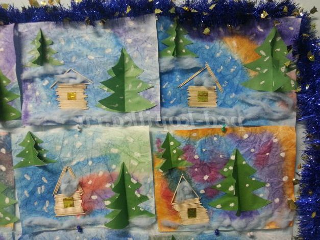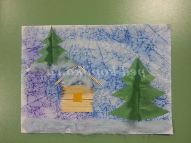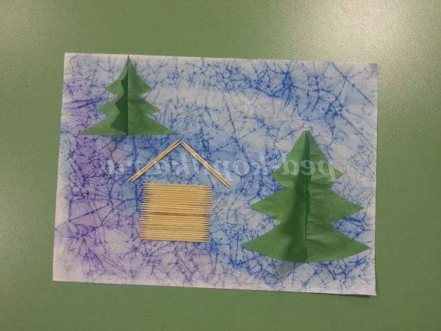Майстер-клас з аплікації з елементами малювання «Будиночок у зимовому лісі»