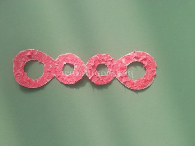Почнемо прикрашати нашу ВІСІМКУ. Для цього ми будемо використовувати техніку «мазанка» для паперу. Беремо гофрований папір і рвемо на маленькі шматочки і обклеюємо ВІСІМКУ з двох сторін.
