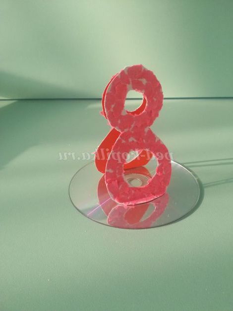 Тепер приклеюємо ВІСІМКУ до CD диску, трохи загинаючи краї нашої роботи.