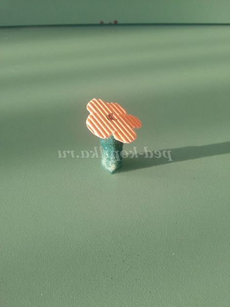 На стебло приклеюються квіти з гофрованого картону (з нього вони здаються більш об'ємними),так само різного розміру і кольору.