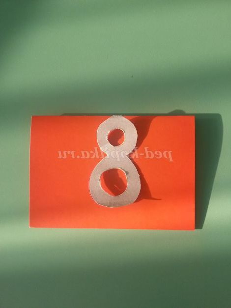 Для початку нам потрібно вирізати довільно трафарет ВІСІМКИ і обвести її на зігнутому навпіл картоні, причому початок вісімки має починається біля згину картону.