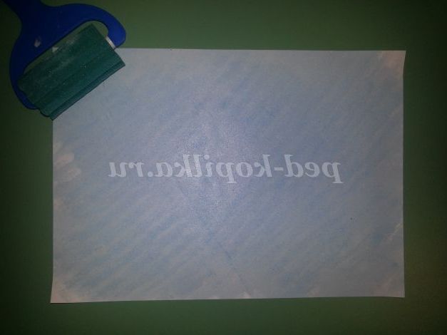 Який акваріум без води, так що почнемо з тонування аркуша за допомогою блакитного і синього крейди. (Малюнок 9)