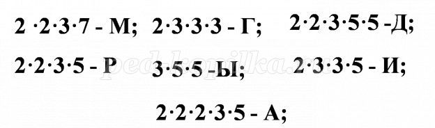 Щоб дізнатися тему нашого уроку, вам потрібно розгадати нескладну шифровку. Ви легко впораєтеся із завданням, якщо згадаєте, як розкладати числа на прості множники.