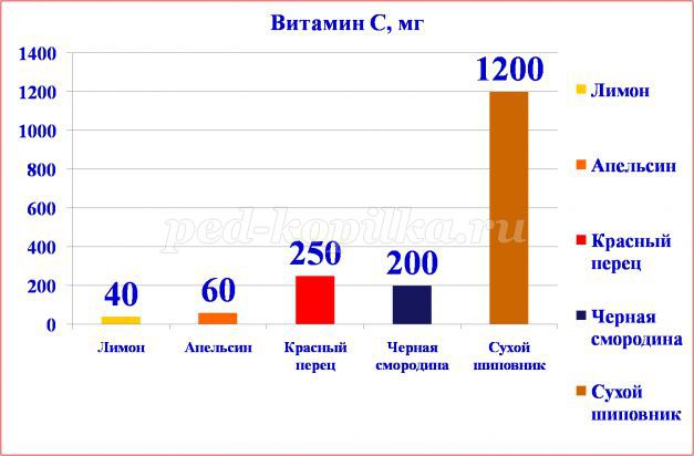 У скільки разів в апельсині вітаміну С міститься менше, ніж в сухому