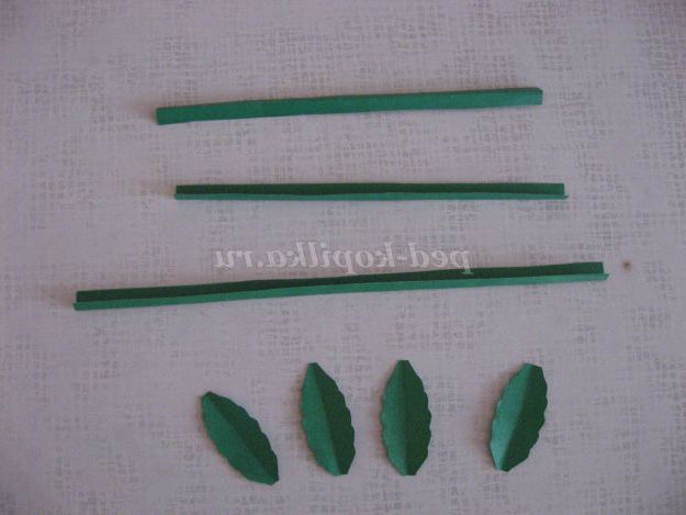 Готуємо стебла і листочки. Кожен стебло і листок складаємо навпіл і клеєм по одній половинці.