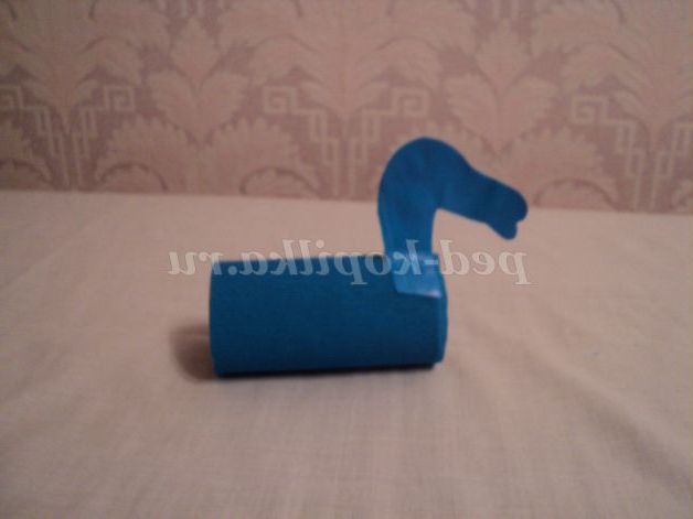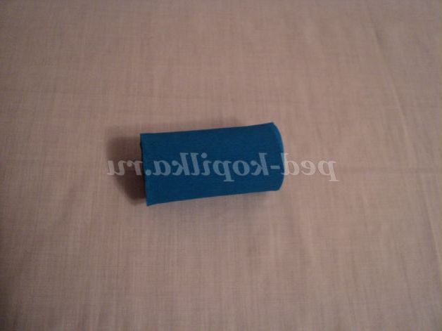 Матеріали: рулончик з туалетного паперу, гофрована сіня папір, клей, кольоровий папір, сині олівці.