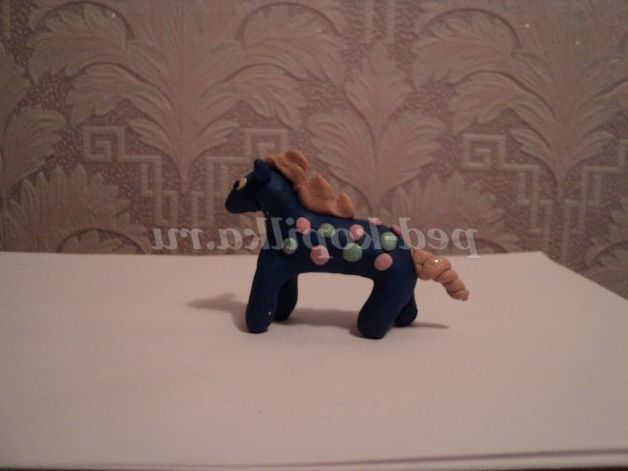 А ось таку конячку можна зробити з пластиліну. Для гриви і цяток використовували пластилін з блискітками.