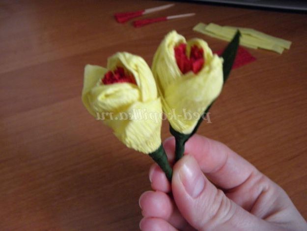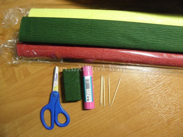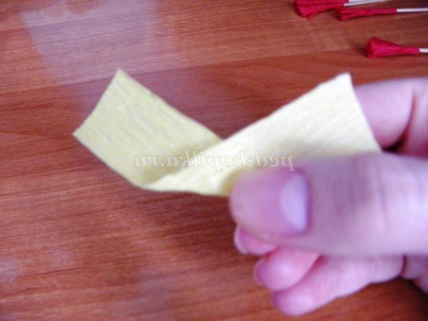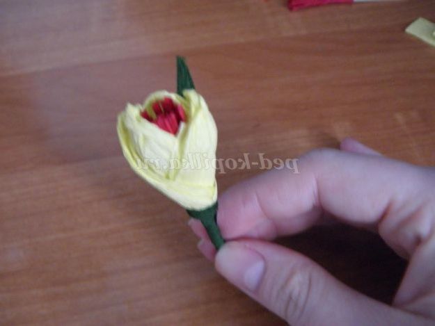 Крок 5. Саму зубочистку обертаємо зеленим папером, додаючи пелюстки.