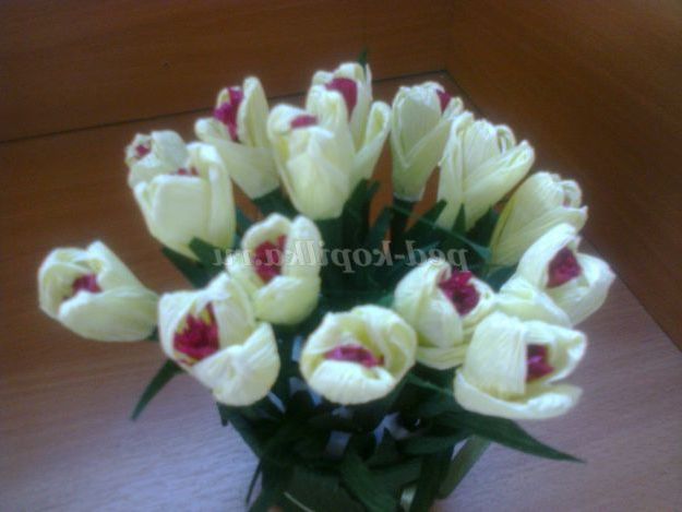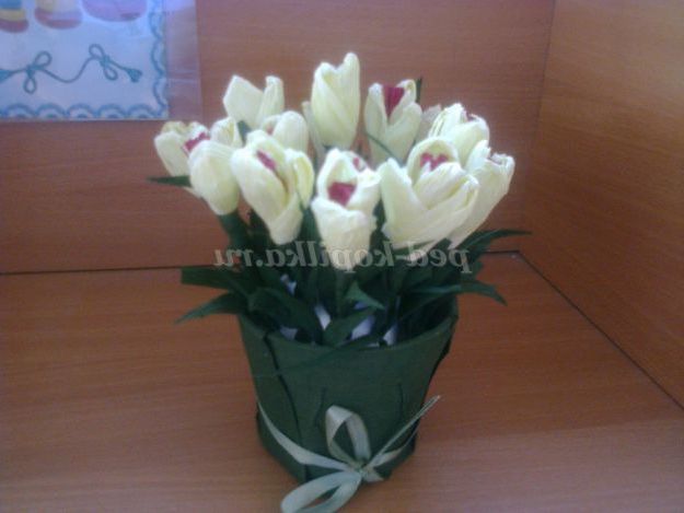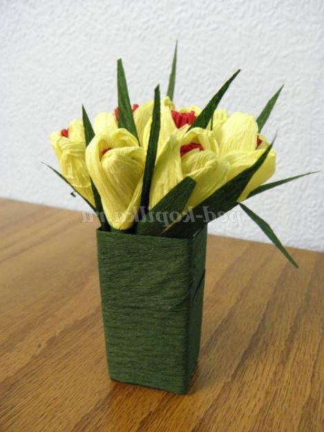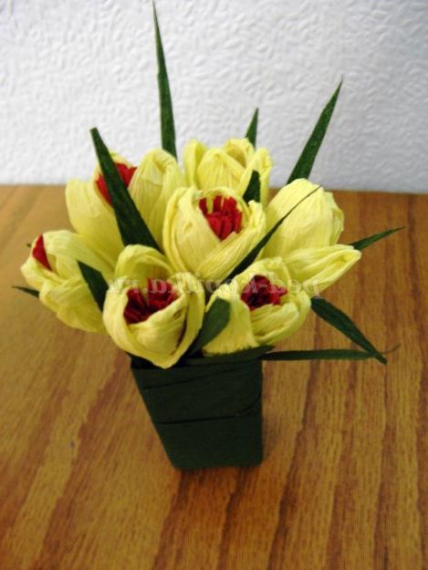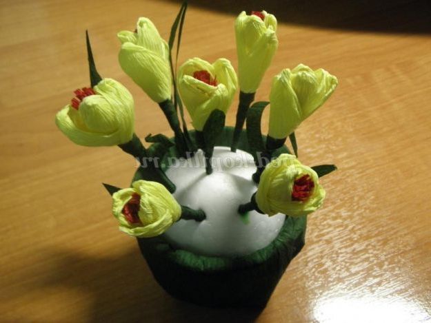 гофрована (крепований) папір, зубочистки, клей, пластиковий горщик або коробочка, пінопластовий кульку.