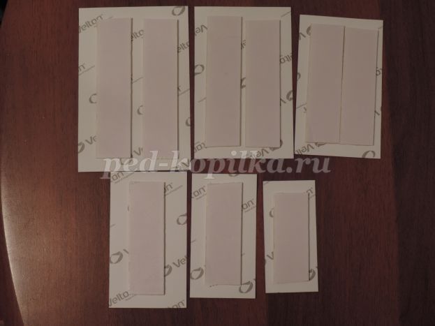 2. Беремо заготовки і вирізаємо прямокутники з різницею 0,5см з кожної сторони. Виходить, від більшого до меншого. (Першу залишаємо початкового розміру.