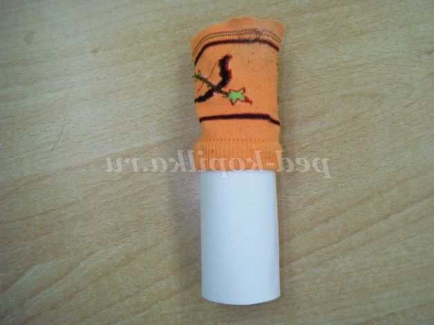 Приклеюємо носок резинкою до рулончику .