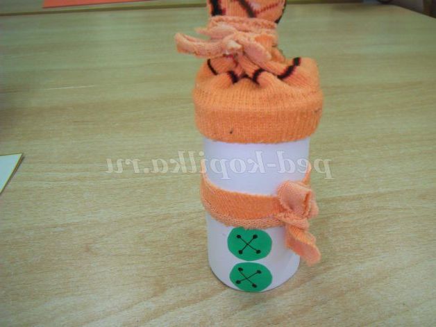 Представляю Вам майстер-клас з покроковим виготовлення вироби «Сніговичок». Цей матеріал може бути корисний педагогам, батькам для виготовлення творчої вироби спільно з дітьми. Вік дітей може бути різним: від 3 років і старше. Все залежить від педагога. В молодшому віці педагог всі деталі вирізає сам і тільки допомагає виконувати роботу. В старшому віці діти все роблять самі. (Невеликі труднощі у дітей викликало вирізання з носка, але спільними зусиллями ми впоралися).