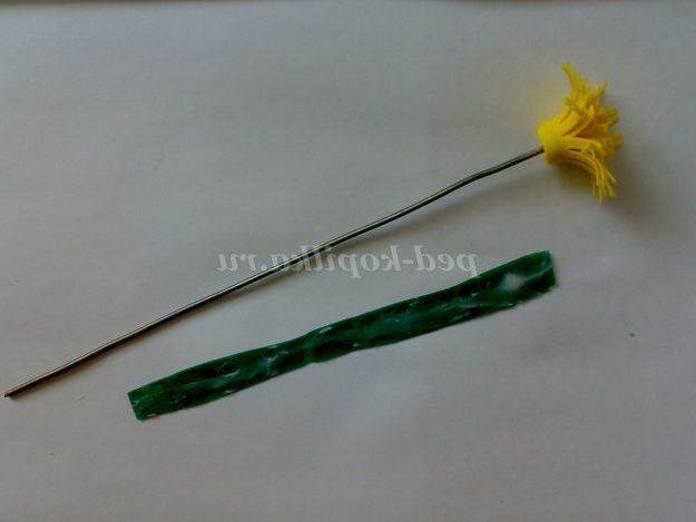 Стебло у кульбаби товстий і соковитий - для того, щоб домогтися подібності, необхідно нанести латексний клей на вузьку смужку глини і обернути дріт з бутоном кульбаби, розгладити стик.