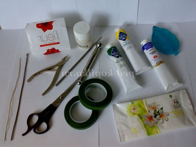 3. флористичну стрічку зеленого кольору (для обмотки дроту - стебла),