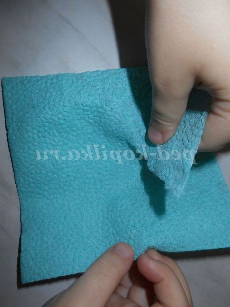 Відриваємо куточок від серветки зеленого кольору.