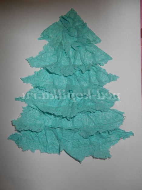 Так само приклеюємо і наступні яруси ялинки. З кожним рядом довжину смужки з серветки не забуваємо збільшувати.