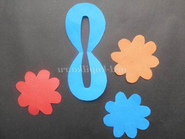 Вирізаємо, вийшло по дві квітки різного кольору і чотири пелюстки. Цей набір ми будемо використовувати для внутрішньої частини листівки, поки його відкладемо в сторону.