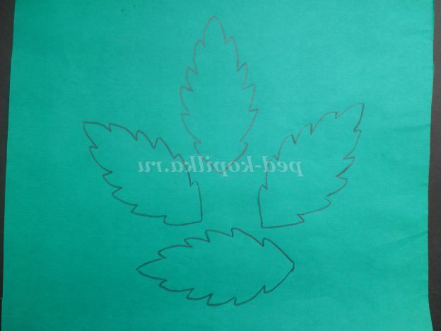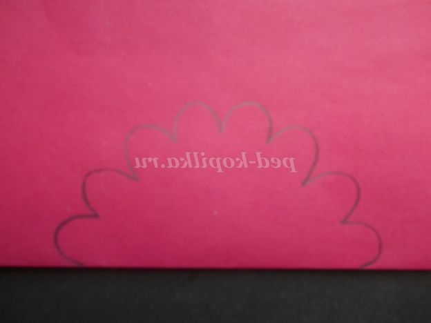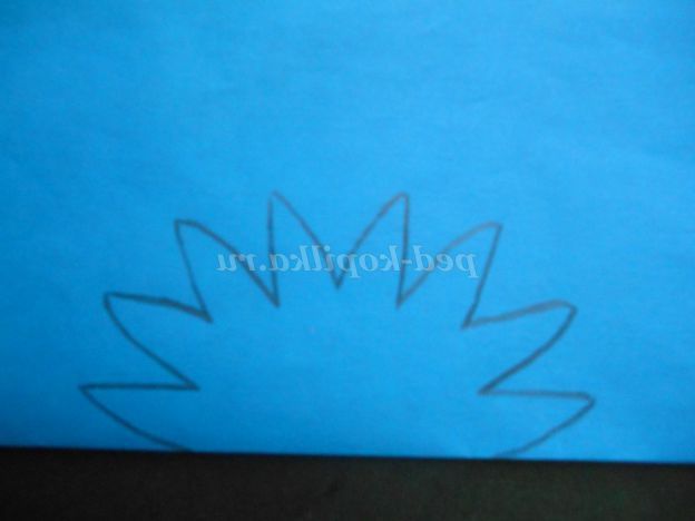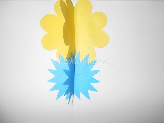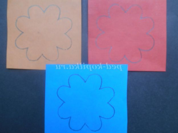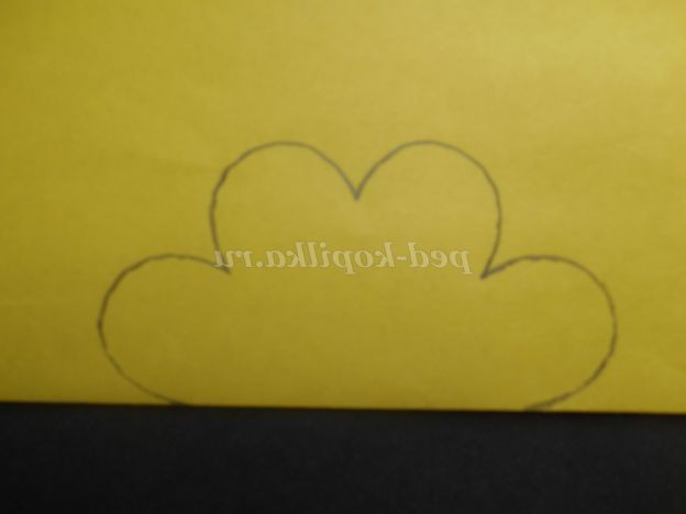 Папір жовтого кольору складаємо вчетверо і малюємо половину квітки. Квітка малюємо так, щоб середина була в загнутого краю.