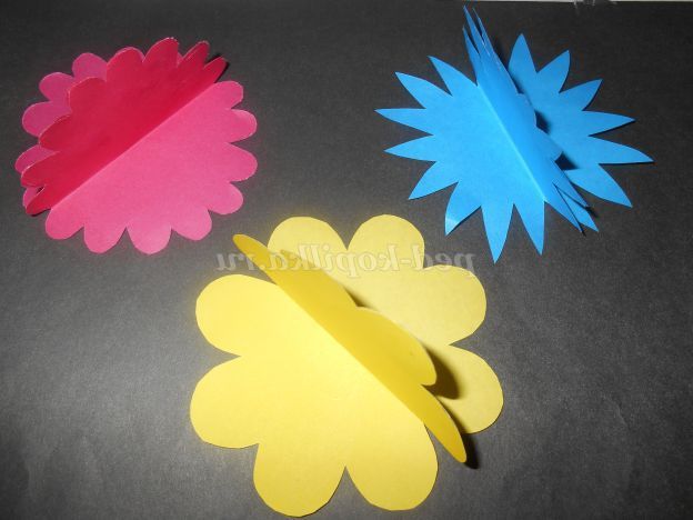 Склеюємо дві квітки в один наступним чином, виходять об'ємні квіти.