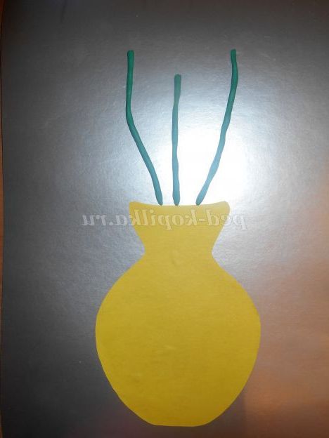 Малюємо на звороті кольорового паперу жовтого кольору вазу.