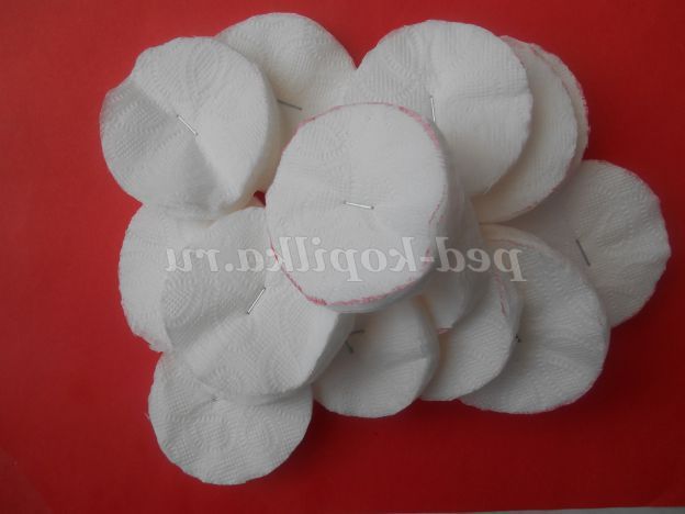 Тепер робимо квіти для прикраси. Паперову серветку складають вчетверо, закріплюємо в середині за допомогою степлера.