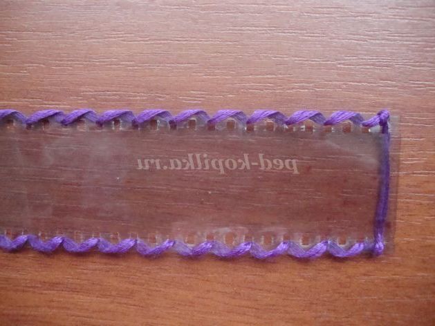 - в кожен отвір «обметочным швом» - голка в отвір зверху, потім знизу в петлю, затягнути.