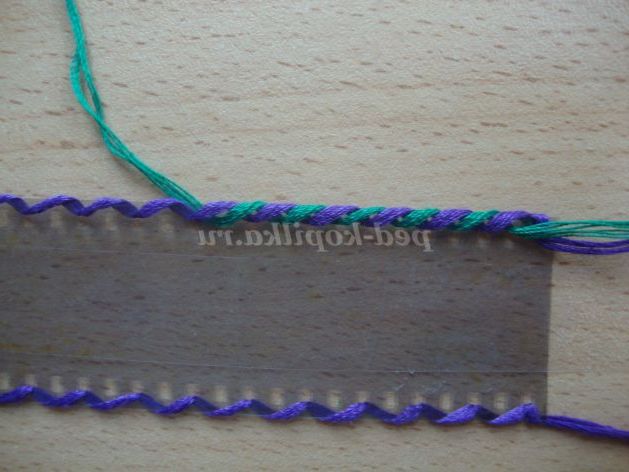 а кінці з іншого боку - зверху. З'єднати всі кінці і зав'язати під нижнім краєм закладки вузол.