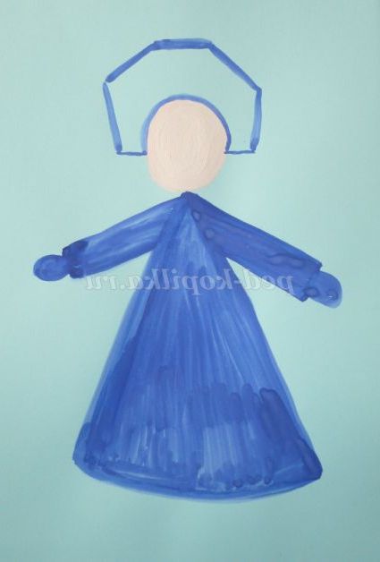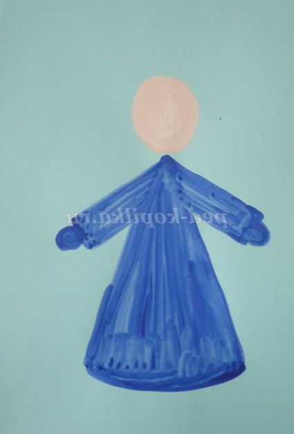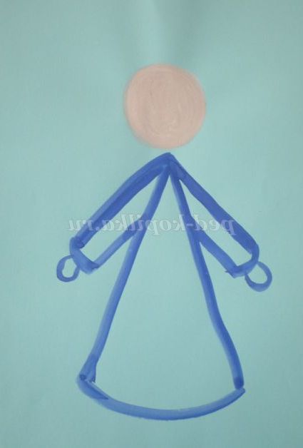 Вибираємо фарбу холодного відтінку для шубки. Малюємо контур шубки і рукавичок.