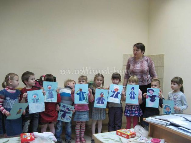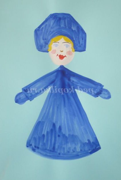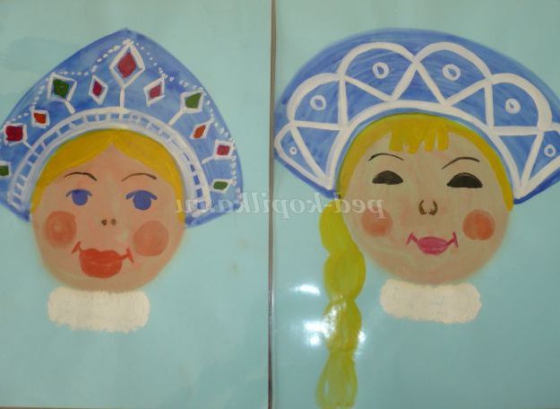 Мета і завдання: Вчити зображати казковий образ Снігуроньки через її вбрання: довгий шубку зі сніговими візерунками з хутряною обробкою, із красивим російським головним убором - кокошником. Вчити підбирати холодні кольори для зображення одягу. Привчати правильно розташовувати частини обличчя. Закріплювати прийоми малювання: всією кистю і її кінчиком. Розвивати фантазію, творчість, уяву. Виховувати акуратність, посидючість.
