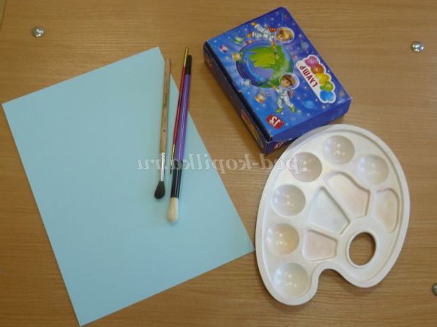 Матеріали: тонований аркуш паперу А4, гуашеві фарби, круглі кисті (білка № 2-3, № 5-6), пензлик з щетини № 10-12, палітра, одноразовий ножик, баночка для води, ганчірка.