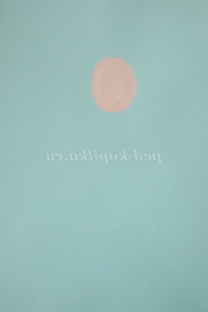 Почнемо малювати Снігуроньку з зображення особи. Колір обличчя зображуємо світло-рожевим. Для отримання такого відтінку викладаємо на палітру білу фарбу і трохи червоною, потім змішуємо і малюємо овал.