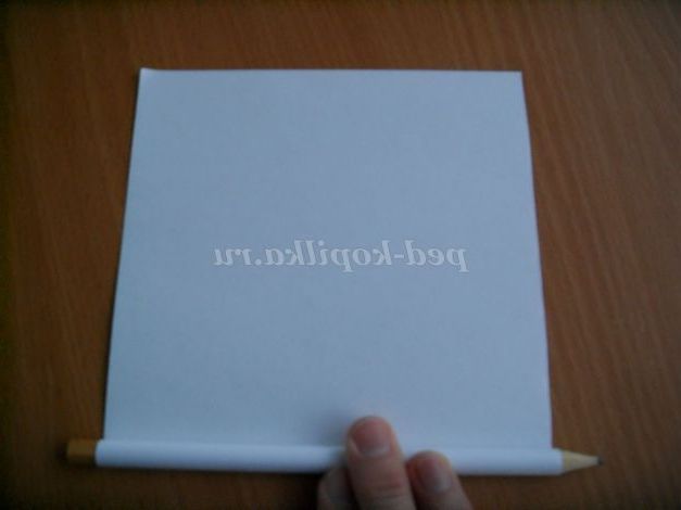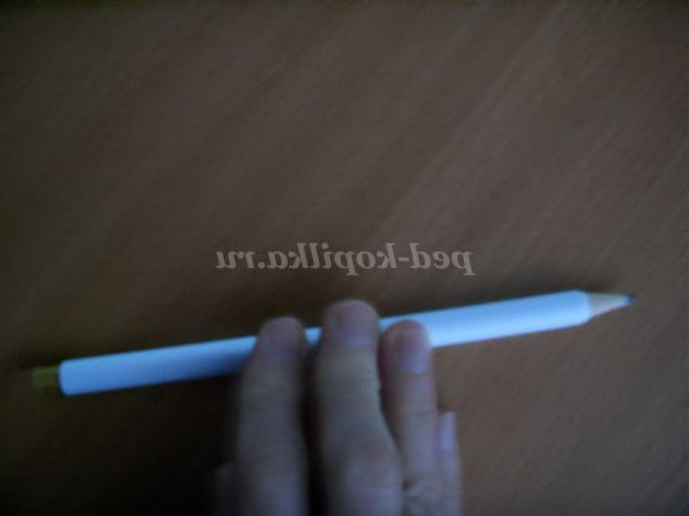 3. А тим часом робимо трубу. Беремо половину білого аркуша паперу і починаючи з короткої сторони накручуємо її на олівець, край зафіксувати клеєм. Олівець дістаємо - труба готова.