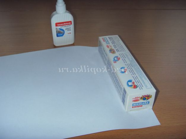1. Намазати клеєм широку межу коробки і приклеїти до білого аркушу паперу, починаючи від краю.