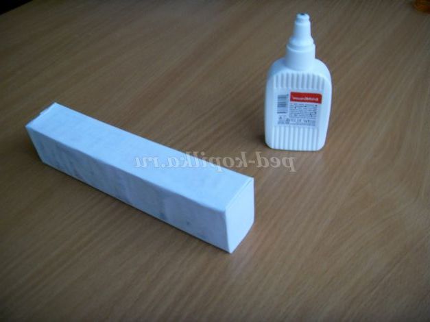 Потім аналогічно промазуємо інші грані і обклеюємо всю коробку. Основа для кораблика готова!