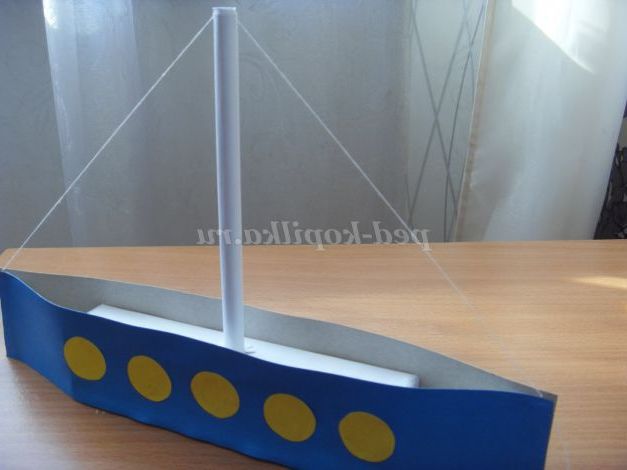 Призначення: виріб може бути використана в якості подарунка татові на 23 лютого або другу на день народження. Виріб виглядає дуже привабливо, кожна дитина захоче мати у себе такий кораблик, тому з великим бажанням візьметься за виконання роботи. Легко перетворившись у маленького капітана, можна розіграти морське пригода або з радістю подарувати кораблик близькій людині.