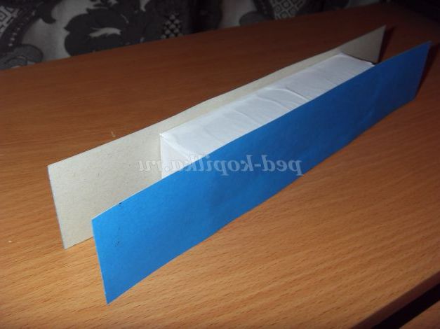 2. Приклеюємо смужки картону до широких граней коробки, розташувавши їх симетрично. Для міцного склеювання необхідно чим-небудь