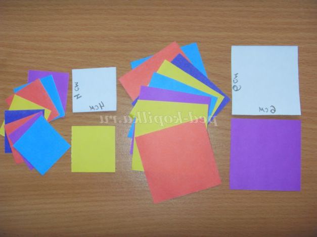 6. Заготовимо квадрати 6х6см і 4х4см для квітів - по 11 штук (за бажанням кількість можна змінити).