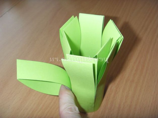 1. Лист зеленого паперу складаємо навпіл, поєднуючи довгі сторони.