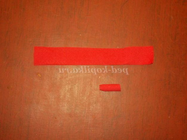 З гофрованого паперу відрізаємо смужку 10см.*2см. І скручуємо її, склеюємо, це вийде стовбур для нашої троянди.