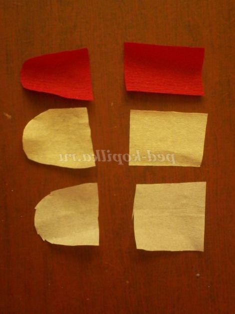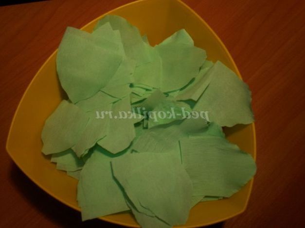 Поки застигає наша глина, готуємо квіти. Технологій виготовлення квітів з гофрованого паперу дуже багато. Я зупинилася на одному. На наш топіари знадобиться приблизно 100 штук, дивлячись, якого розміру будуть ваші троянди, чим більше троянда тим менше їх потрібно.